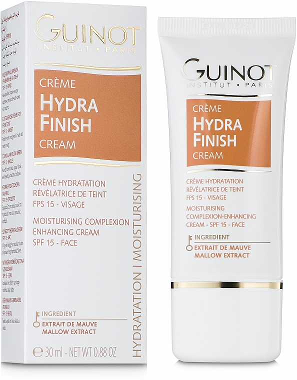 HYDRA FINISH SPF 15 : hydrateert en egaliseert langdurig de huid en beschermt tegen UV-straling.